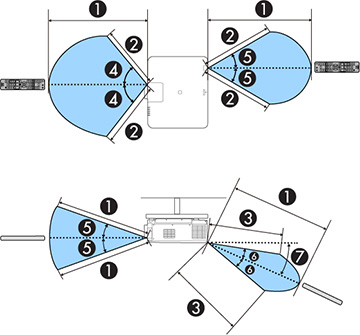 Apunte el control remoto a los receptores del proyector dentro