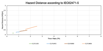 Quando usar projetores e lentes permutáveis que mudem para Grupo de Risco 3, não é permitido que haja exposição direta ao feixe de luz. Operadores devem controlar acesso ao feixe de luz dentro da distância de risco ou instalar o produto a uma altura que previna exposição de olhos à distância de risco. Olhar diretamente para a lente a uma distância de risco mais próxima do que indicado aqui pode causar danos à visão.