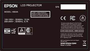 A etiqueta de classificação contém as informações de certificação e identificação do projetor.