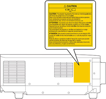 CUIDADO: O EB-PQ2213B pode se tornar RG3 quando lentes intercambiáveis ELPLM10, ELPLM11 ou ELPLL08 estão instaladas. O EB-PQ2216B e EB-PQ2216W podem se tornar RG3 quando lentes intercambiáveis ELPLM10, ELPLM11, ELPLM15, ou ELPLL08 estão instaladas. Consulte o manual para ver a lista de lentes e a distância de risco antes de operar o produto. Tais combinações de projetor e lente destinam-se apenas a uso profissional e não são para uso do consumidor. Quando for instalar este projetor, chame sempre um instalador profissional e garanta a segurança da área ao redor.