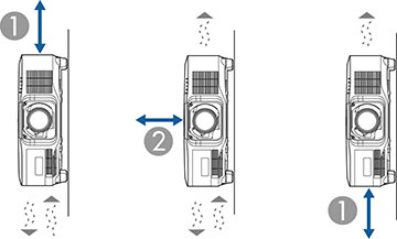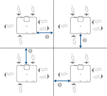 projetor para evitar bloqueio do exaustor de ar e das entradas de