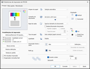 janela de configurações da sua impressora:
