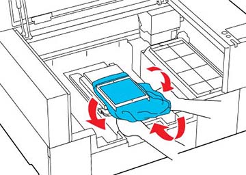 If the garment extends beyond the platen, the printer cover will