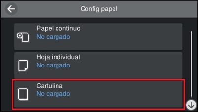 Cuando termine de cargar la cartulina, aparece la pantalla de