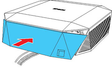 Place the cable cover on the projector as shown, guiding the
