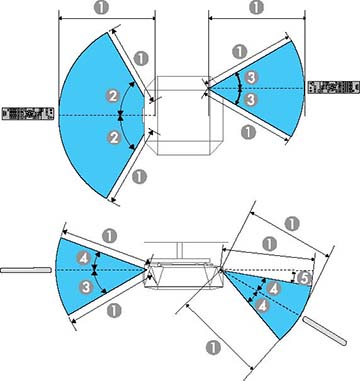 Apunte el control remoto a los receptores del proyector dentro de los ángulos que se indican a continuación.