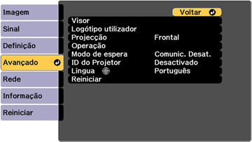 As configurações no menu Avançado permitem que personalize várias opções que controlam a operação do projetor.