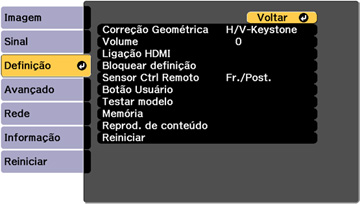 Botão Usuário no menu Definições do projetor, você pode iniciar a