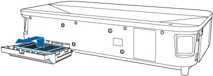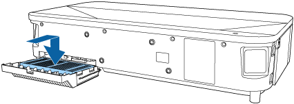 Do not force the air filter cover to close with the tabs on the air filter facing up. Doing so could damage the projector.
