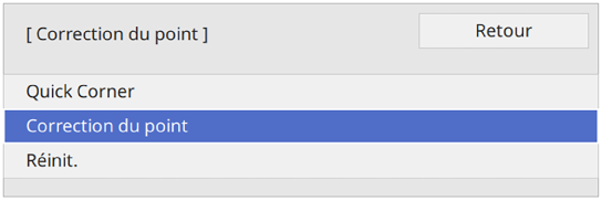 Sélectionnez Correction du point et appuyez sur Enter. Sélectionnez ensuite Oui et appuyez sur Enter si nécessaire.