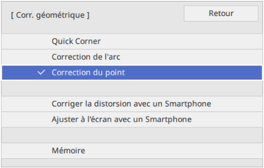 Sélectionnez Corr. géométrique et appuyez sur Enter.