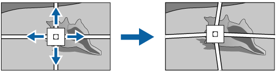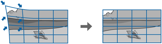 Vous pouvez utiliser le paramètre Correction du point du projecteur pour régler finement la forme de l’image dans des parties de l’image. L'image est divisée en un quadrillage qui vous permet de déplacer les points d'intersection sur la grille comme nécessaire pour corriger la déformation.