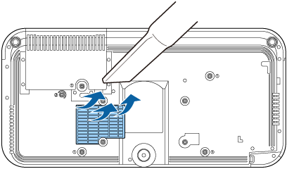 Nettoyez des grilles d'entrée d'air régulièrement, ou chaque fois que vous remarquez de la poussière sur la surface des grilles pour empêcher le projecteur de surchauffer en raison d’une ventilation bloquée.