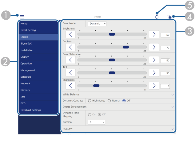 Verrouille/déverrouille les paramètres du projecteur. Le verrouillage protège contre la modification accidentelle des paramètres d'Epson Web Control. |