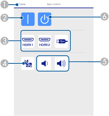 Les options sur l'écran Contrôle de base vous permettent de sélectionner la source d'entrée et de contrôler le projecteur.