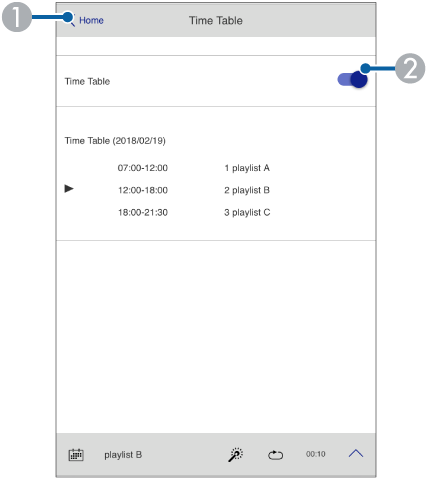Vous pouvez indiquer quand chaque liste de lecture démarre ou se termine à l’aide de la fonction de calendrier du logiciel Epson Projector Content Manager.