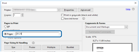 Vous pouvez extraire et imprimer uniquement les pages dont vous avez besoin. Cliquez sur Imprimer dans le menu Fichier, puis indiquez les pages que vous voulez imprimer dans Pages sous Pages à imprimer.