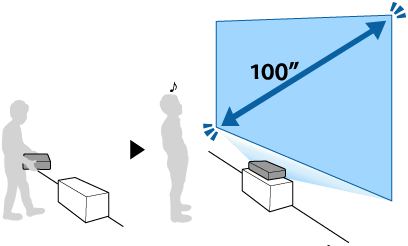 Vous pouvez projeter une image de 100 pouces avec le projecteur installé près du mur. Comme la lumière projetée ne peut pas être bloquée par des personnes ou d’autres objets, vous pouvez utiliser efficacement votre espace de réunion.