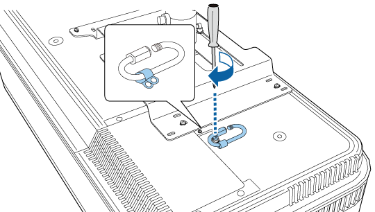 Vous pouvez fixer un câble de sécurité à votre projecteur pour une sécurité accrue, comme indiqué.