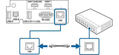 Branchez l'autre extrémité du câble au port LAN du projecteur.