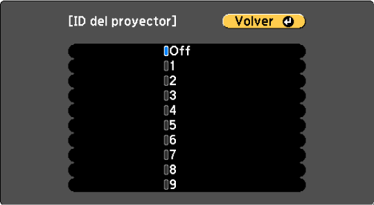 Utilice los botones de flechas para seleccionar el número de identificación que desea utilizar para el proyector. A continuación, pulse Enter.