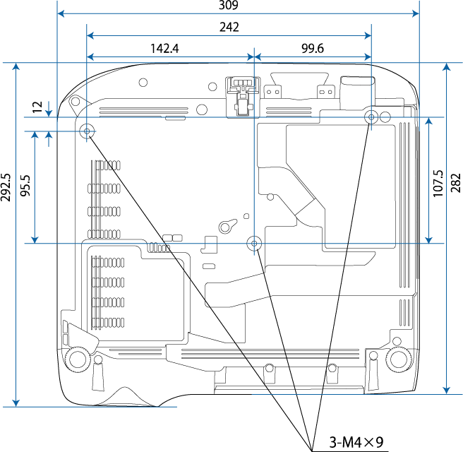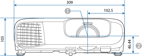 Distancia del centro de la lente al punto de fijación de la bandeja para el techo