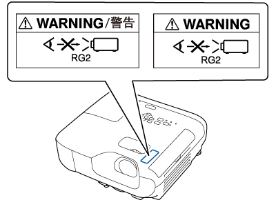 La etiqueta de advertencia está acopladas al proyector.