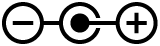 Polaridad del conector de alimentación de CC Para indicar las conexiones positiva y negativa (la polaridad) en una pieza del equipo a la que deberá conectarse una fuente de alimentación de CC. |