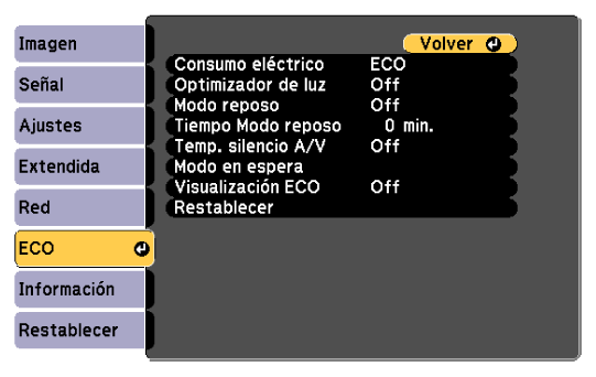 La configuración del menú ECO le permite personalizar las funciones del proyector para el ahorro de energía.