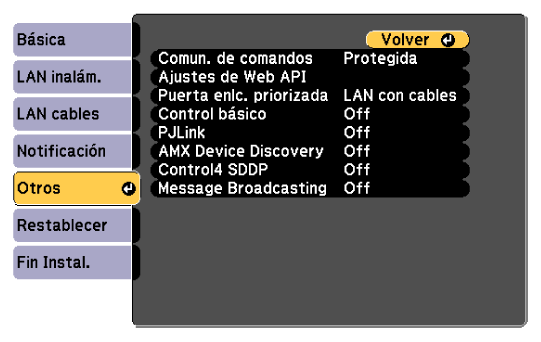 La configuración del menú Otros le permite seleccionar otros ajustes de red.