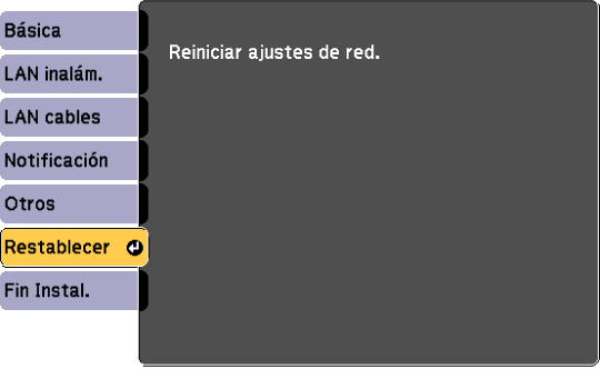 Red > Configuración de la red > Restablecer