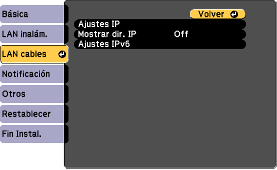 Seleccione los ajustes IPv6 si desea conectar el proyector a la red mediante IPv6: |