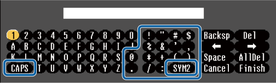Cada vez que seleccione la tecla CAPS, los caracteres cambiarán entre mayúsculas y minúsculas. Cada vez que seleccione la tecla SYM1/2, cambiarán los símbolos que aparecen dentro del recuadro.