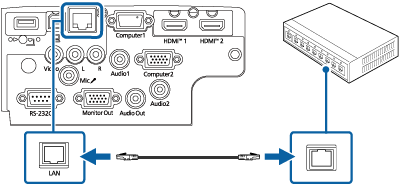 Conecte el otro extremo del cable al puerto LAN del proyector.