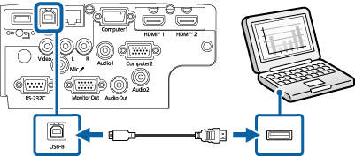 Si la computadora cumple con los requisitos del sistema, puede enviar la salida de audio y vídeo al proyector a través del puerto USB de la computadora. Esta función se denomina USB Display. Conecte el proyector a la computadora mediante un cable USB.