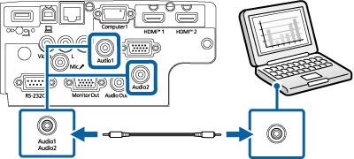 Puede reproducir sonido a través del sistema de altavoces del proyector conectando un cable de audio estéreo con miniconector de 3,5 mm disponible en tiendas.