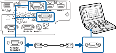 Puede conectar el proyector a su computadora con un cable para computadora VGA.