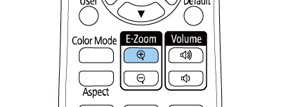 É possível ampliar a imagem projetada utilizando o botão E-Zoom no controlo remoto.