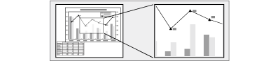 Ao projetar imagens a partir de uma câmara para documentos da Epson, pode ampliar a imagem de uma a oito vezes, em incrementos de 57 utilizando o botão E-Zoom + na câmara para documentos.