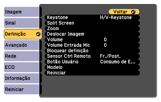 A definição Deslocar Imagem é retida mesmo se o projetor for desligado. Deverá reajustar a posição se alterar o local da instalação ou o ângulo do projetor.