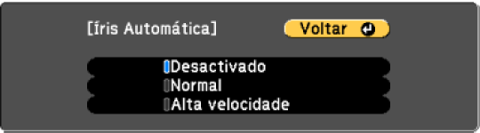 Pode ativar a função Íris Automática para otimizar a imagem com base no brilho do conteúdo.