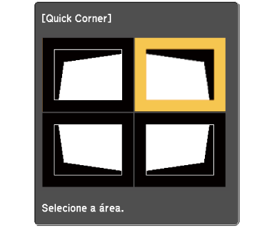 Pode utilizar a definição Quick Corner do projetor para corrigir a forma e o tamanho de uma imagem com rectângulo irregular.