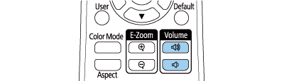 Para diminuir ou aumentar o volume, prima os botões de Volume no controlo remoto, tal como ilustrado.