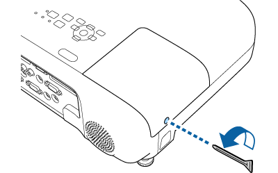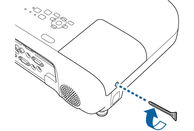 Utilize a chave de fendas fornecida com a lâmpada de substituição para desapertar o parafuso que fixa a tampa da lâmpada.
