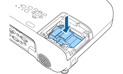 Insira cuidadosamente a nova lâmpada no projetor. Se a lâmpada não encaixar facilmente, certifique-se de que se encontra na posição correcta.