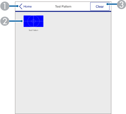 Exibe os padrões de teste disponíveis. Selecione para projectar um padrão de teste. |