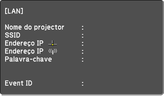 Exibir Info.de LAN. permite definir o formato de exibição das informações de rede do projetor.