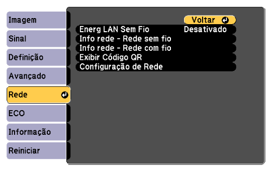 Antes de poder projectar a partir de computadores da sua rede, deverá selecionar as definições de rede no projetor.