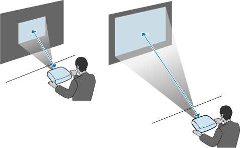 Consulte o Anexo para obter mais detalhes sobre a distância do projetor para o ecrã, com base no tamanho da imagem projectada.