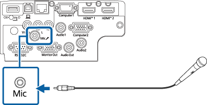 Pode ligar um microfone à porta Mic do projetor para disponibilizar suporte de áudio durante apresentações.